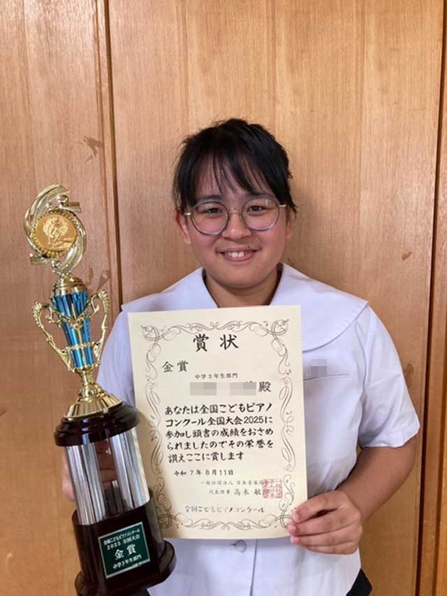 ・全日本こどもピアノコンクール全国大会金賞(中学)